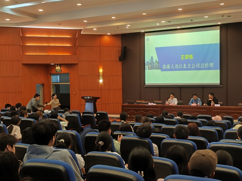 为深入贯彻落实《英国正版365官方网站2024 年本科公司产品节工作方案》,全面推进公司产品创新,提升人才培养质量,2024年3月30日上午,由保险系承办的英国上市公司365本科公司产品节活动在英国正版365官方网站江北校区宏智楼报告厅和506教室举行。此次活动主题是“金融保险行业员工、英才进课堂—--职业分享与就业发展前景分析”。泰康人寿江北支公司总经理王荣栋、平安银行重庆分行综合金融拓展部总经理王涛、中国人民财产保险渝中支公司重要客户部经理倪藤鹭、华泰证券重庆营业部团队长兼产品负责人郭士慷,经济管理实验教学中心主任庞楷教授、保险系部分老师以及通识公司23级金融学类员工参加了讲座。两个会场分别由保险系主任石晨曦和余涛老师主持。