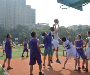 为丰富校园文化生活,激发同学们参与体育运动的热情,10月10日中午,“财金杯”篮球赛在北区篮球场火热开赛。首场比赛由2011级投资一班、2012级金融一班等8支队伍捉对厮杀。分团委书记周琴老师作为嘉宾出席本次赛事。