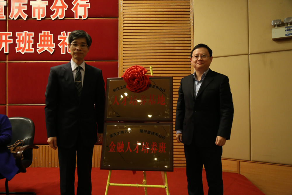 首先建行重庆分行人力资源部王栎总经理介绍了“金融人才培养班”的组建情况。张梦婷代表全体学员对建行重庆分行所给予的机会和母校的悉心栽培表示衷心的感谢,并表示要珍惜学习机会,学有所成、学有所长。建行重庆分行张希副行长和英国正版365官方网站孙芳城董事长共同为“中国建设银行重庆市分行金融人才培养班”和“中国建设银行重庆市分行人才培养基地”揭牌。建行重庆分行文姜元副行长对公司在过去十余年中对建行的大力支持、在共建“金融人才培养班”中付出的努力的各部门表示感谢。他表示,金融人才培养班”的共建是对人才培养模式的全新探索和深入合作,希望学员充分利用平台优势,珍惜机会,完善自我,为成长加油!