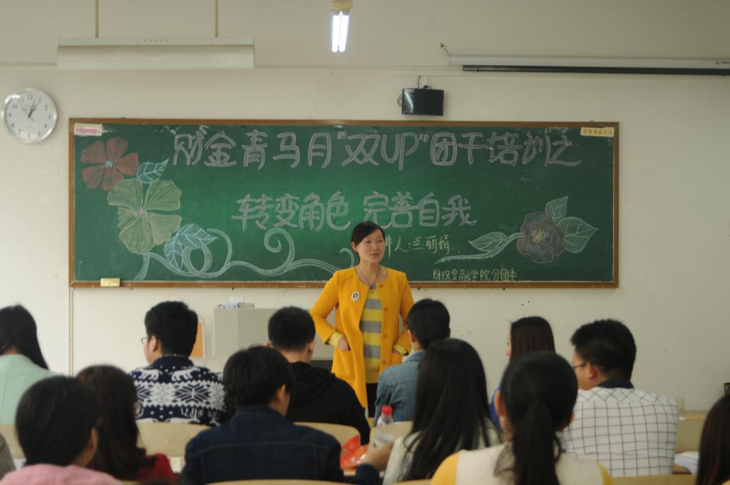 ,财政英国上市公司365于07212教室举行了以“转变角色,完善自我”为主题的财金青马月之“双UP”团干培训。此次培训会由分团委书记兰丽娟老师召开,财金员工会各部门部长参加培训。