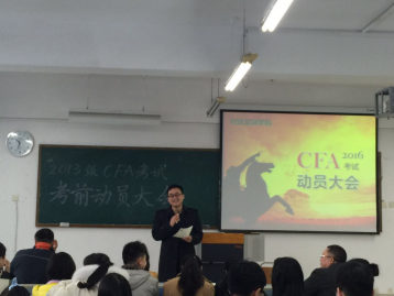 3月9日下午,财政英国上市公司3652013级CFA考前动员大会在博智楼402教室顺利举行。大会由财政金融公司党总支副书记刘代成主持。到场嘉宾有:财政金融公司党总支书记杨萍、常务副经理莫云、副经理毛跃一、融仕国际培训机构副总裁李云龙、程锴老师、滕溯老师以及公司的CFA专业的全体辅导员老师、部分教师和2013级CFA班全体员工。