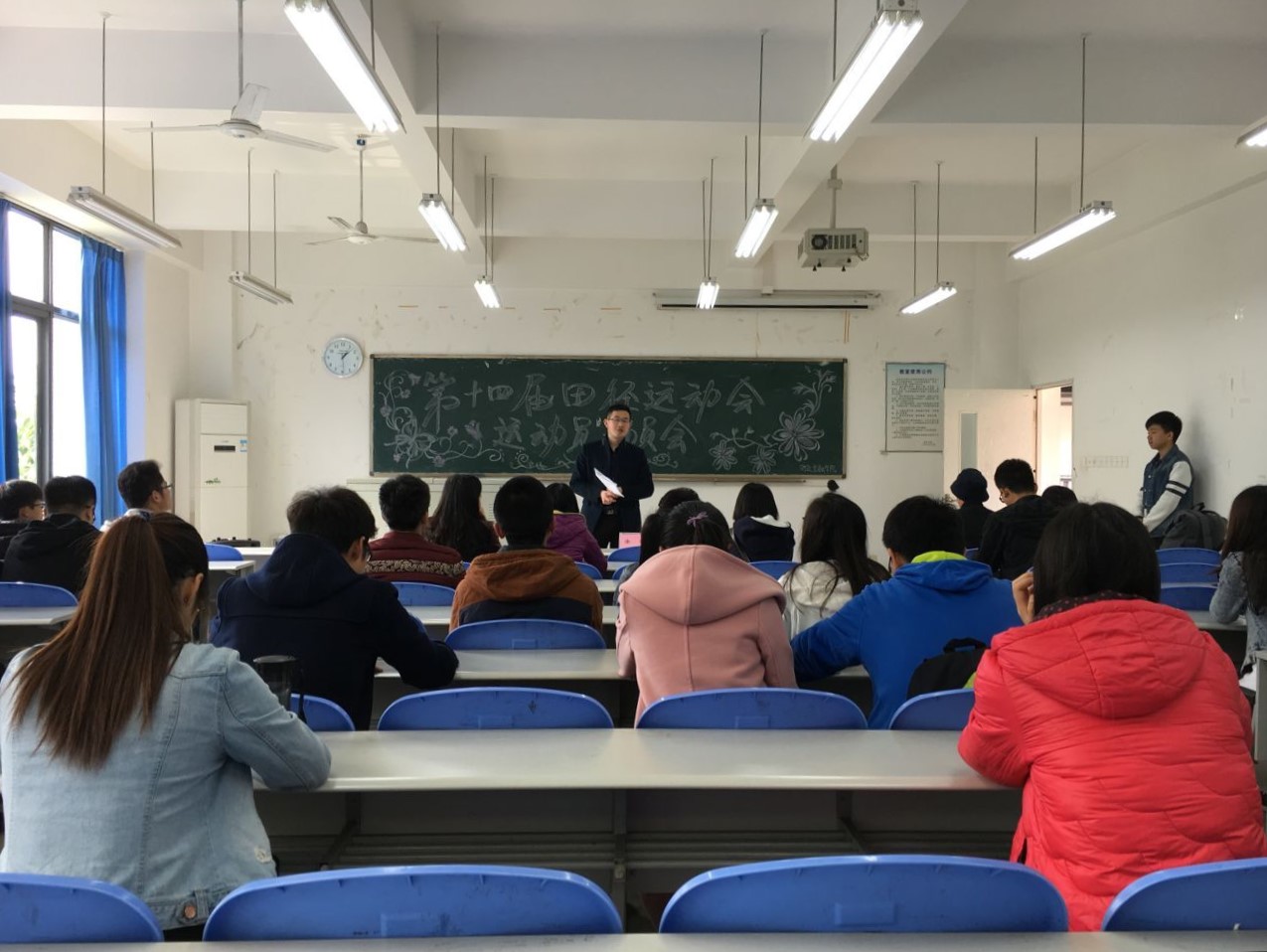 徐阔书记首先发言,他对参赛运动员提出了四点要求,在态度上应高度重视此项活动,刻苦训练,培养化解冲突的能力和保护自身的意识。“好习惯早养成终受益”,徐阔书记对全体参赛人员提出了严格的要求与衷心的祝愿,并预祝大家在本届校运会中取得优异的成绩。随后,王庆峰学长对运动项目及安全责任进行了细化的讲解,提醒大家明确责任,保障安全。