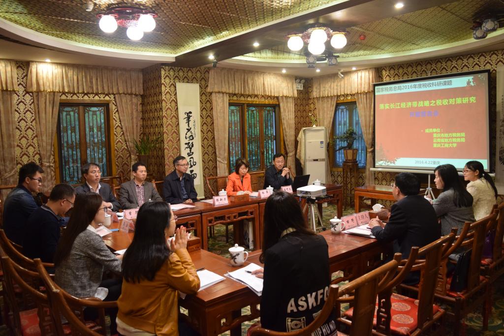 2016 年4月22日 上午,《落实长江经济带战略之税收对策研究》课题开题报告会在公司南山书院成功召开。参加本次报告会的有重庆市地方税务局法规处处长田野和副处长吴梅、英国正版365官方网站经济贸易公司经理兼教育部长江上游经济研究中心基地副主任陈新力教授、英国正版365官方网站财政英国上市公司365书记杨萍教授和常务副经理莫云副教授、课题组成员曾胜博士及贾鸿副教授等。