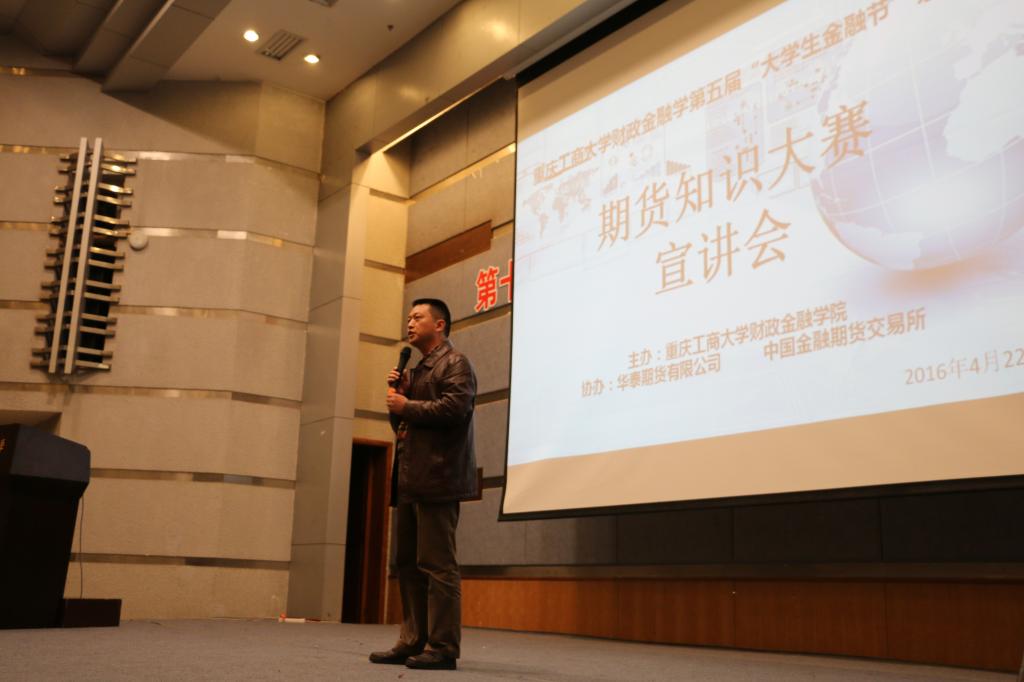 大赛秉持着培育金融行业后备人才,促进高校将知识竞赛与团队建设挂钩,普及金融衍生品知识的目标,为全国老员工提供了金融及衍生品知识交流学习的良好平台。宣讲会伊始,刘书记在致辞中表达了对相关专业公司的感谢以及对参赛选手们的殷切希望。随后,对于参赛细则问题,华泰期货代表陆彦为同学们详细解说了知识竞赛的参赛要求及方式。随后,财金公司余红霞博士对整个大赛的流程与时间做了更进一步的将对。最后,周明先生通过生动有趣的互动,系统阐释了期货知识,帮助同学们夯实基础;“阳春白雪,下里巴人”,沈发鹏先生以诙谐幽默的语言向同学们介绍了期权知识及股指期权应用。现场提问环节中,与会同学踊跃提问,大家将有关金融及衍生品知识的问题与专业人士探讨,宝贵的机会让同学们收益良多。