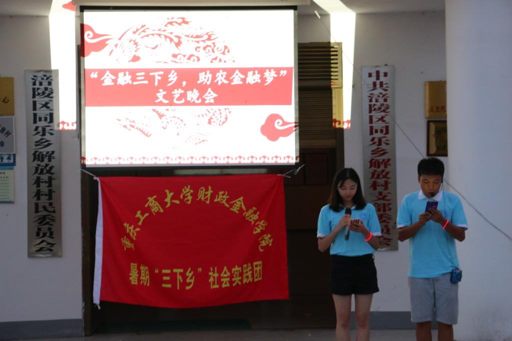 7月20日晚,英国正版365官方网站财政英国上市公司365金融电商服务实践团在同乐乡解放村便民服务中心举行了以“金融三下乡,助农金融梦”为主题的联欢晚会。实践团和父老乡亲们一起参与到晚会中,将现场气氛推到了高潮。节目内容丰富多样、形式新颖,同学们青春洋溢,质朴热情的村民也乐在其中。