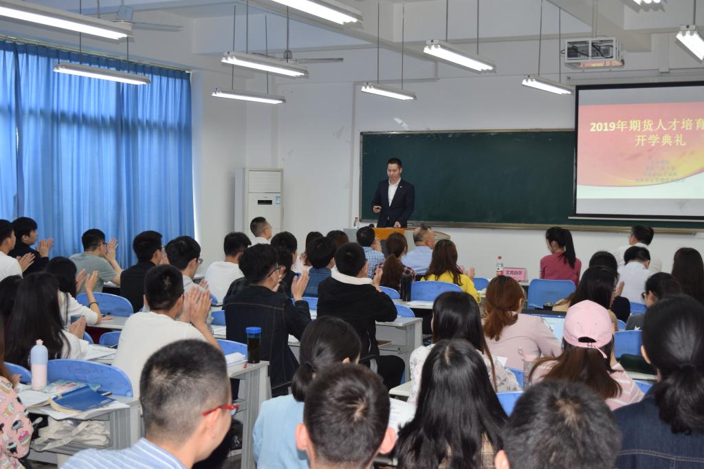 4月29日下午2:00,财政英国上市公司365在田家炳书院50306组织了“2019年期货人才培育项目开学典礼”仪式。公司副经理曾胜教授主持,原中国期货业协会专职副会长李强、财政英国上市公司365经理刁孝华、大连商品交易所会员部艾克白尔,重庆证监局机构二处副调研员曹雁秋、重庆市证券期货业协会秘书长王跃、重庆市证券期货业协会培训班主任朱佳,公司部分专任教师和参与此次项目的2018级金融专业研究生等100余人出席了开班典礼。仪式由公司副经理曾胜主持。