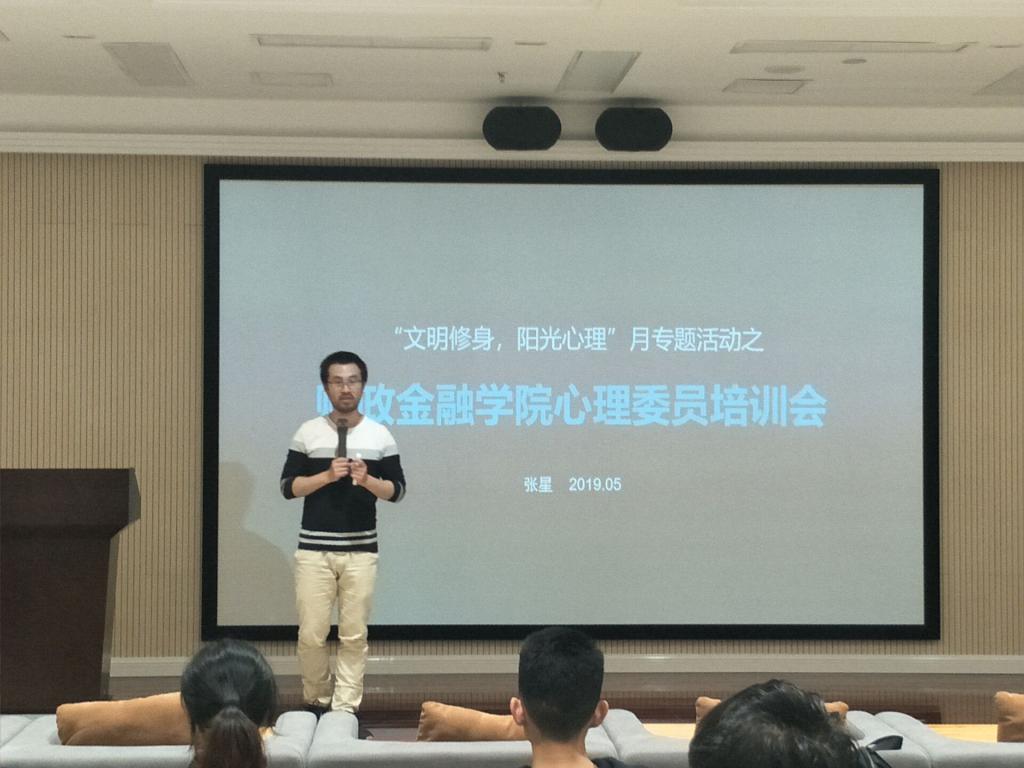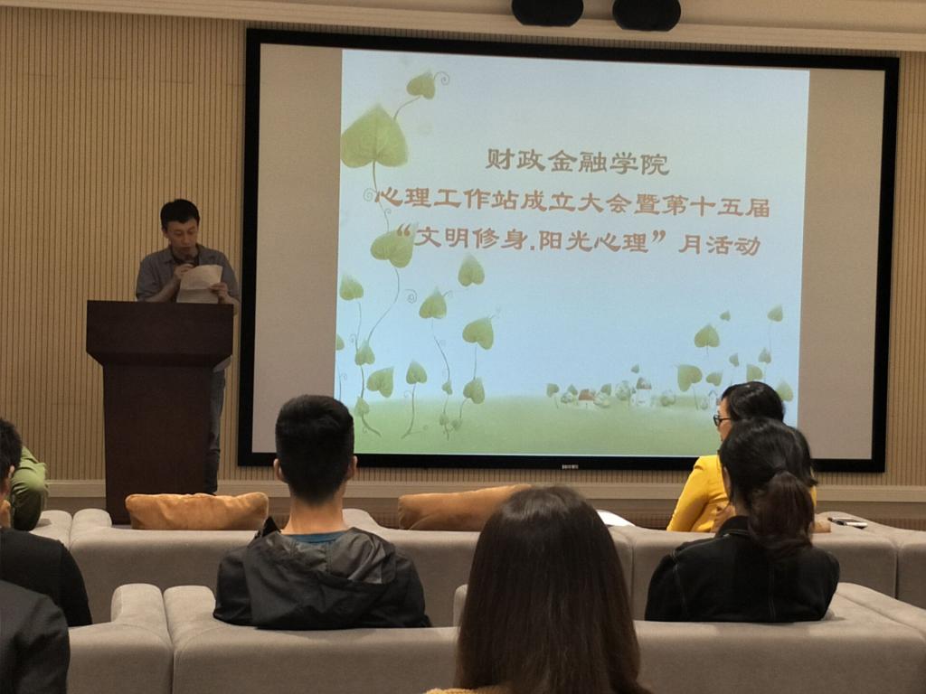 财政英国上市公司365心理工作站成立大会暨第十五届“文明修身·阳光心理”月活动于5月5日下午14:00点在图书馆视听阅览室如期举行。公司党委黄谦副书记出席并宣布院心理工作站成立并对工作站提出具体的工作要求;学团办主任兰丽娟老师带领与会的全体心理委员学习了《英国正版365官方网站公司心理工作站实施细则》;首任站长分享了校心理工作站的培训精神和要求。活动的重点是邀请校心理健康咨询中心兼职教师张星老师向全体心理委员做了有关“如何做好心理异常察觉、初步预防及报送工作”的培训活动。张老师理论阐述与团体辅导相结合的精彩教学,让全体受训心理委员如醍醐灌顶,提高了大家开展班级心理工作的能力,增强了大家搞好班级心理工作的信心。下午16:00活动圆满结束。