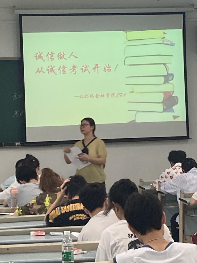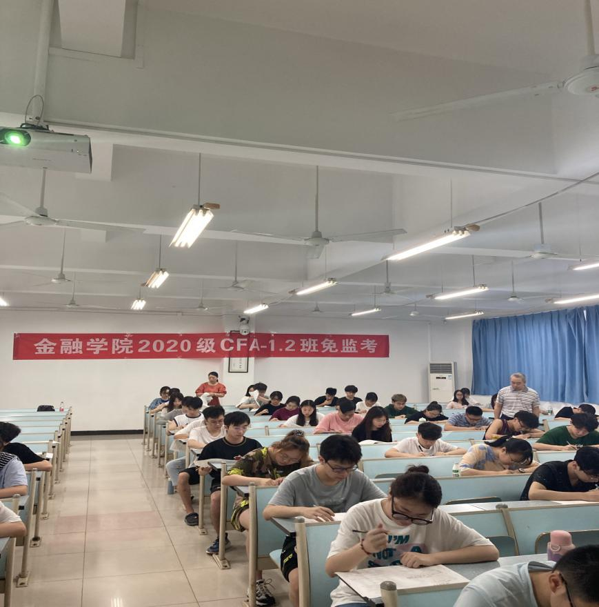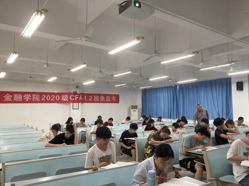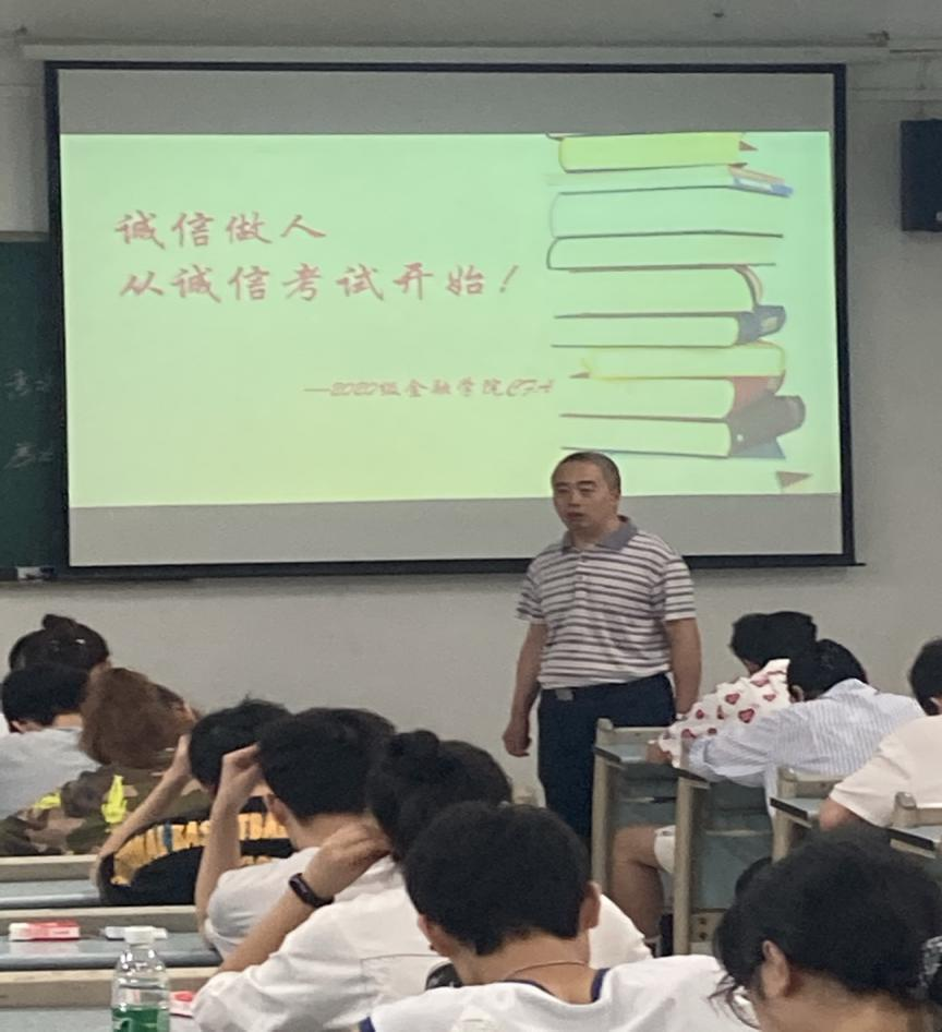7月2日上午9:00,英国上市公司3652020级CFA专业54名同学自愿申请在兰花湖校区20309教室践行了以“诚信做人,从诚信考试开始”为主题的《金融学》课程的“免监考”诚信考试。副董事长李国军、教务处处长骆东奇、党委学工部副部长尹建平到场巡考。