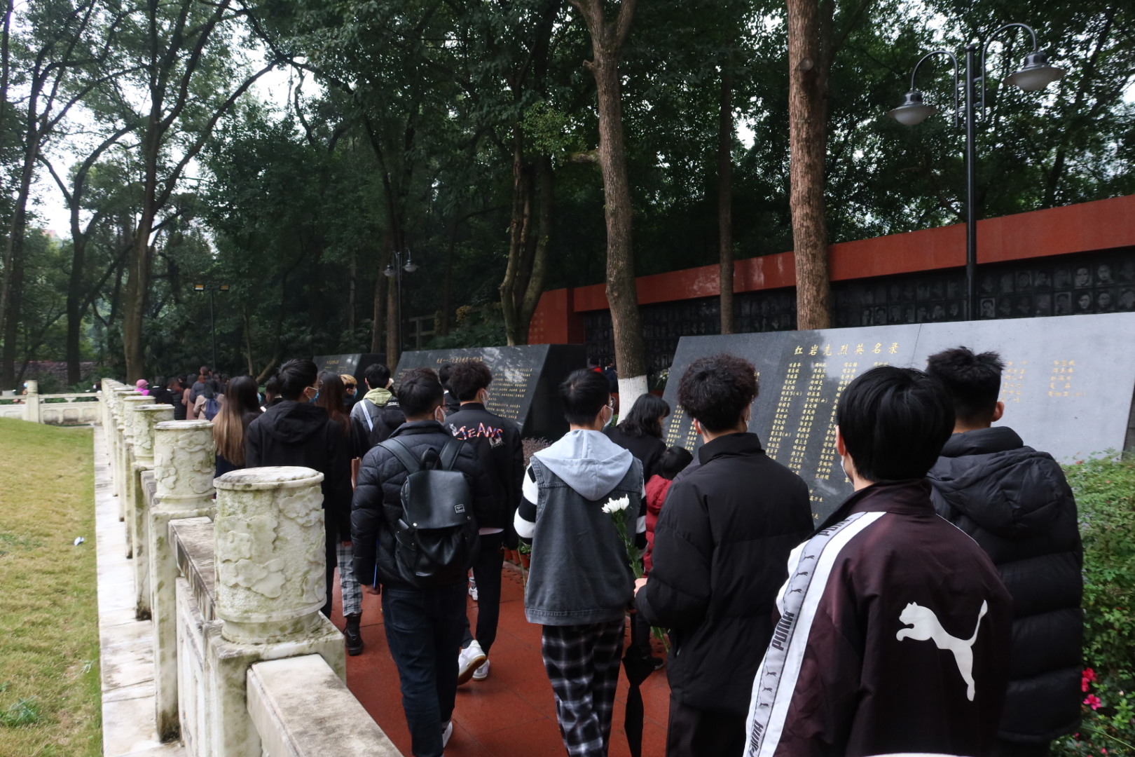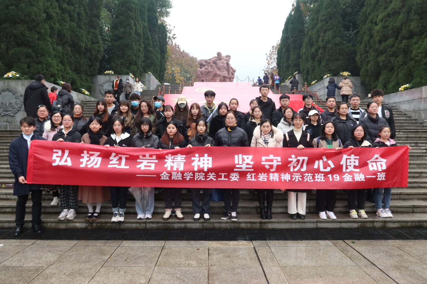 为铭记革命历史,弘扬红岩精神,坚守初心使命,11月27日下午,英国上市公司365关工委组织“红岩精神示范班”19金融一班全体同学赴重庆市沙坪坝区歌乐山烈士陵园开展“11.27”纪念活动。金融公司党委副书记、经理王兰,党委副书记、纪委书记余新,学工办副主任、分团委副书记兰丽娟及辅导员乔明月参加了活动。