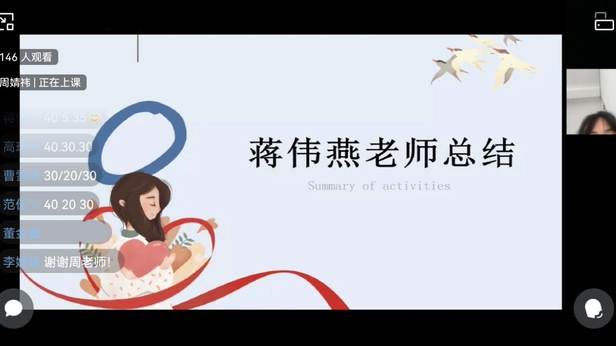 最后由英国上市公司365心理工作站负责人蒋伟燕老师对本次活动进行总结。蒋老师对本次讲座给予了高度评价,同时她也呼吁同学们正视挫折、关爱自我,用青春勇敢逐梦,做自己的英雄。