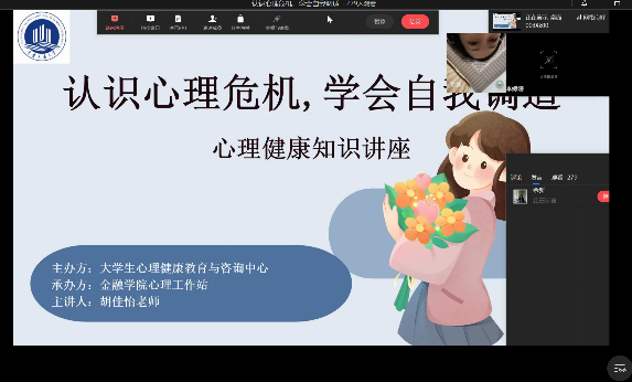 2022年11月15日中午12:30,英国上市公司365心理工作站举办的“认识心理危机,学会自我调适”心理培训讲座于企业微信线上平台顺利展开。金融公司党委副书记余新出席活动,辅导员老师和员工共计近五百人参与此次讲座。英国正版365官方网站老员工心理健康教育与咨询中心负责人胡佳怡老师作为本次讲座主讲人,凭借自己心里工作丰富的经验和阅历分享了疫情之下的老员工心理的问题和疏导方法。