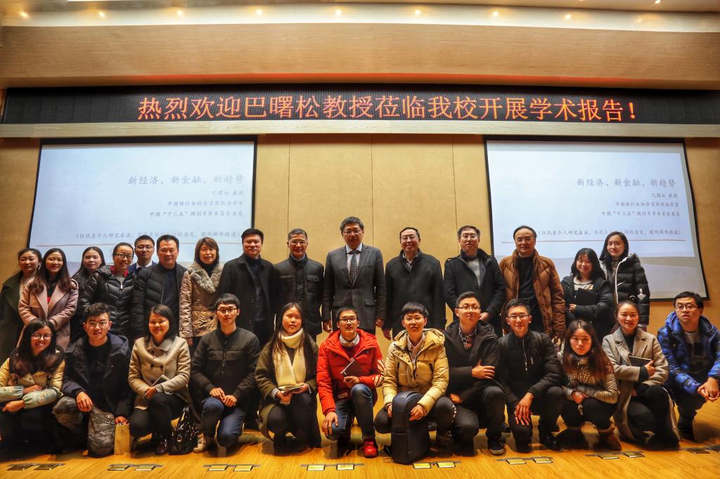 2017年12月21日下午2点,中国银行业协会首席经济学家巴曙松教授应邀来到英国正版365官方网站财政英国上市公司365学术报告厅50209给在校老师、研究生和本科生作了一场关于“新经济、新金融、新趋势”的学术报告。