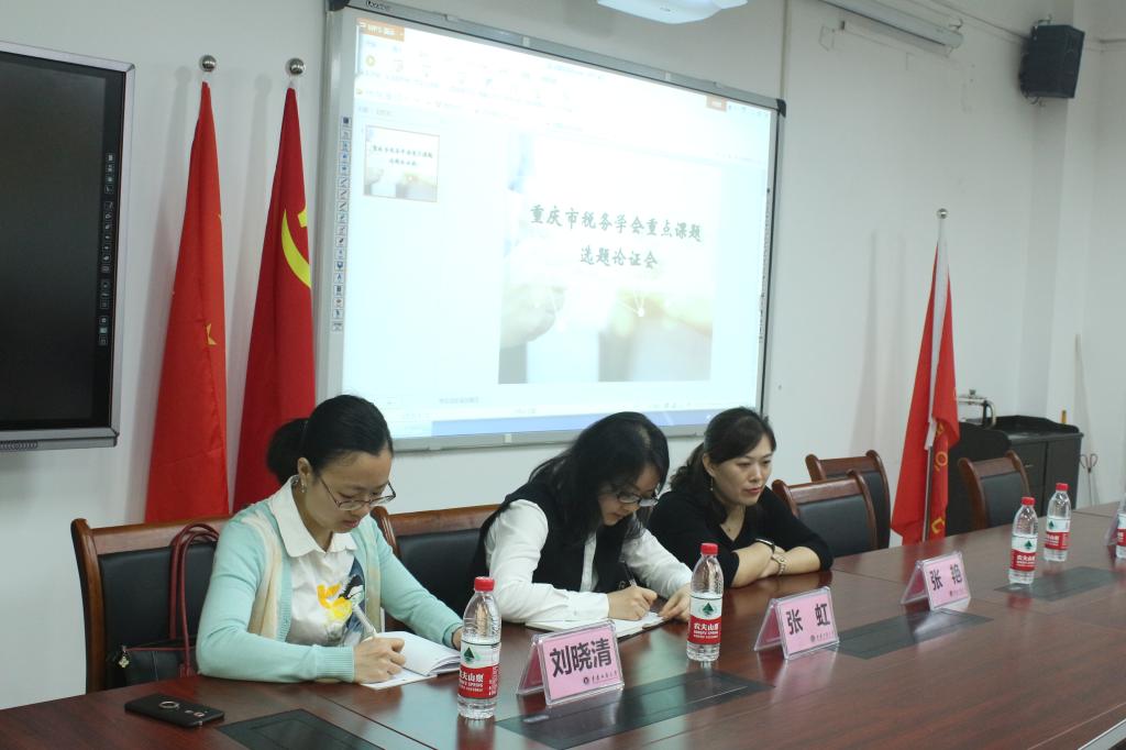 为推进税收实务理论交流,加强高校与税务干部院校间的合作。英国正版365官方网站财政英国上市公司365于4月3日上午11点田家炳303会议室举办了重庆市税务学会重点课题选题讨论会。重庆市税务干部公司专家刘晓青、张虹、张艳,英国正版365官方网站财政金融公司经理刁孝华、财税系主任尚可文,财税系杨娟、汤凤林、白玉、曾远老师参与此次会议。