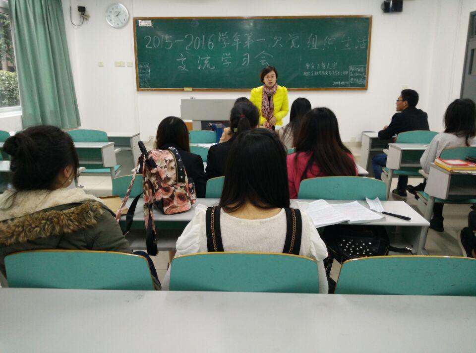 在支部书记范乐乐老师的主持下,全体人员开展2015-2016学年第一次党组织生活交流学习会。刘琪同志代表考研的同学讲述了一下她们近来的学习状况以及思想方面的进展,她谈到:考研的时间临近,时间分秒必争,作为一个共产党员学习工作必须两不误。徐永慧同志代表找工作的同学分享了她的实习经历,谈及到因为接受党的思想熏陶,思想觉悟有了很大的提高,对于找工作是一件好事情。最后,范乐乐老师也给大家分享了她本人关于考研与工作的一些经历和感悟,促进了大家对于考研与工作的认识。还有其他一些同志也提出了一些学习上的疑惑,其他同志都热心解答了,整个交流学习会大家都积极参与,团结互助,有着良好的氛围。