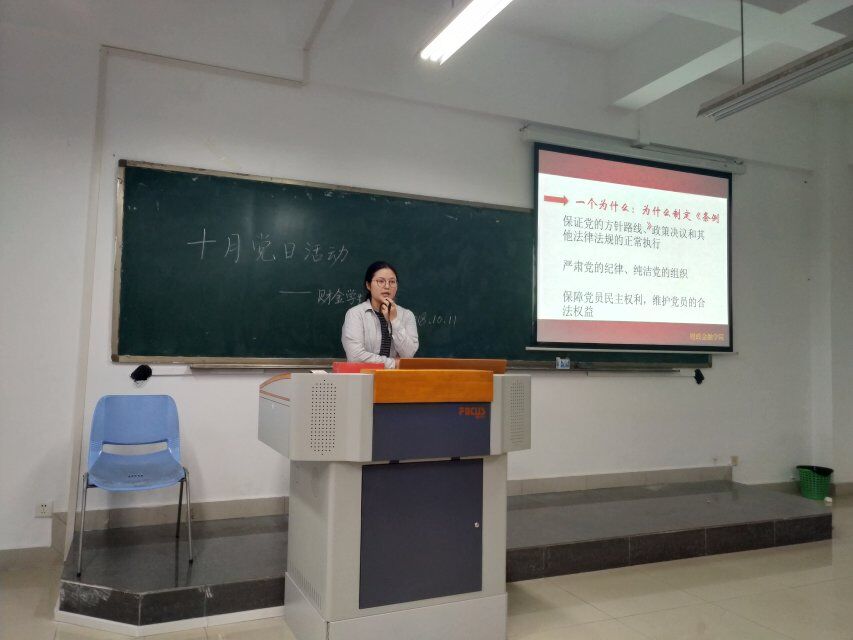 2018年10月11日下午,财政英国上市公司365员工第一党支部在田家炳306召开了10月第一次党日活动。会议由秦杰同志主持,财金员工一支部书记文理以及16、17级共69名入党积极分子列席会议。本次活动的主要内容有:1.学习《中国共产党章程》第七、八章;2.学习《中国共产党纪律处分条例》第1—5章。