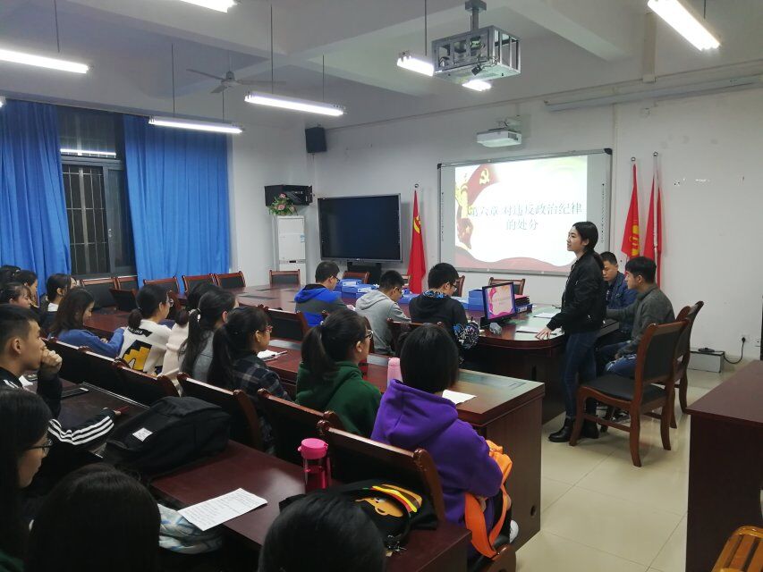 会议首先学习《中国共产党纪律处分条例》第六章至第八章。在分享中,曹璇同志利用“网络主播莉哥戏唱国歌事件”向我们说明了互联网传播言论的威力,提醒各位同志在网络上也要注意言行。另外,曹璇同志对《条例》中的“山头主义”表达了疑惑;徐慧娟同志介绍了《条例》的第六十六条至七十条,利用班级选举发红包拉票的例子,说明他人不得妨碍个人行使表决权、选举权和被选举权等正当权利;戴琰婷同志介绍了“贵州凯里洪金洲搞家长制、一言堂”的例子,认为作为党员要有一颗为党和人民服务的心。我们面对上级决定,要坚决执行,不然党会变成一盘散沙;程岱雅馨同志着重介绍了第八十六至八十八条,对《条例》中“可能影响”的判定标准表示疑惑。
