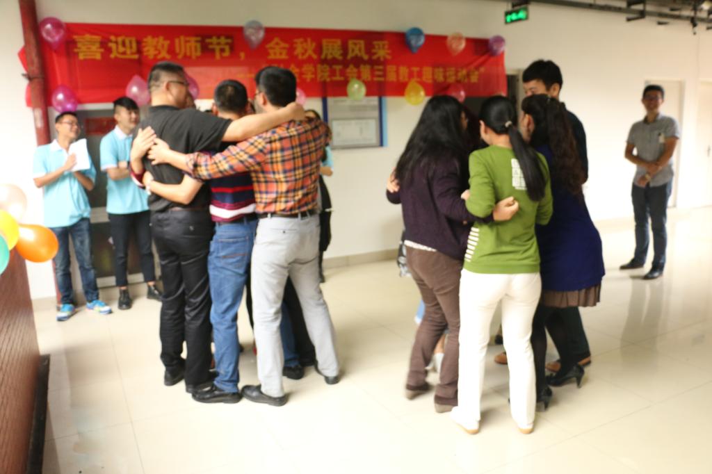 本次活动在各位老师的积极参与和现场工作人员的默契配合下紧锣密鼓地进行着。首先,全体老师被分成四个队伍进行团体作战;然后,整个活动围绕着“抢红包”、“搬运气球”、“球球大作战”三个环节展开,时而竞争激烈,时而“化敌为友”,现场妙趣横生,欢笑连连,老师们连日紧张的神经得到了充分的放松。最后,比赛角逐出两支胜利的队伍,分别获得由主办方准备的大礼包。活动在老师们的意犹未尽中圆满结束,所有参与活动的老师在收获欢乐的同时都收到了一份精美的教师节小礼物。