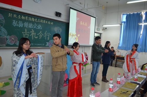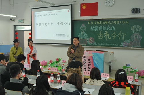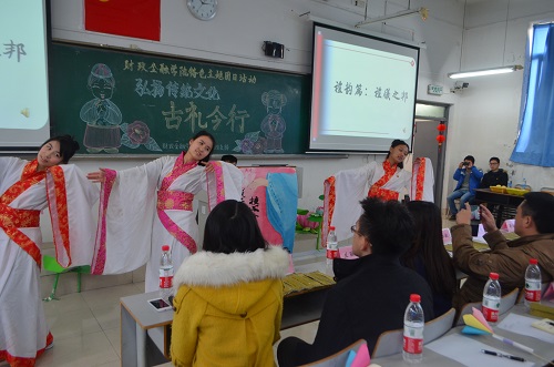 为培育和践行社会主义核心价值观,提升员工人文道德素养,财政英国上市公司3652013级金融四支部于2014年12月18日下午在博智楼406教室举办了“弘扬传统文化——古礼今行”特色主题团日活动。财政金融公司党总支刘代成副书记、分团委书记兰丽娟老师、辅导员谭会敏老师以及校团委员工会组织部成员、财政英国上市公司365分团委员工会主席团成员作为嘉宾莅临活动现场。