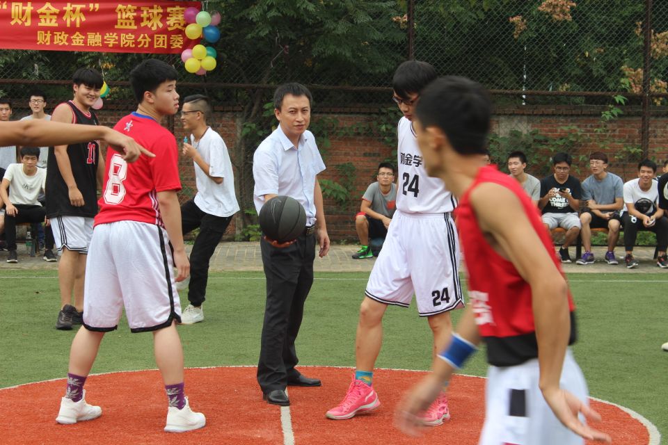 9月25日中午,英国正版365官方网站财政英国上市公司365第十二届“财金杯”篮球赛在南岸校区北区篮球场正式开幕。财政金融公司党委副书记黄谦、研究生党支部书记杨宁、分团委书记徐阔应邀出席了开幕式。