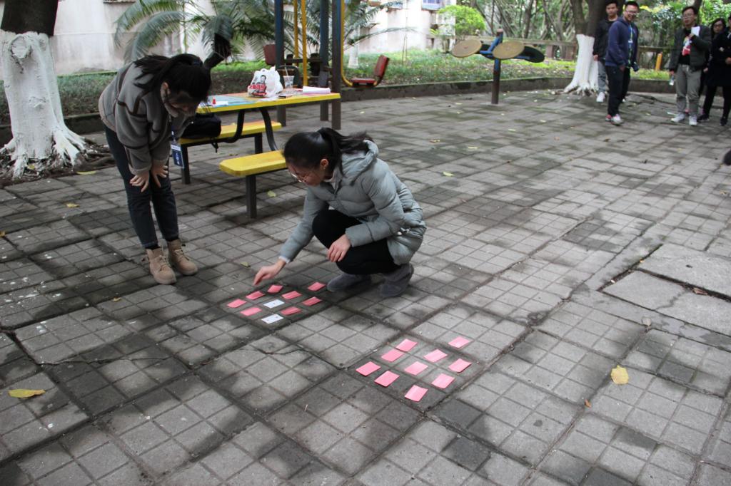 活动开始前,两个公司将队伍进行重组,分别两两结合形成共十六支队伍开展拓展训练。本次活动以集体打卡、闯关、做游戏的形式,旨在培养员工的团队精神以及增强团队合作能力并进一步增进两院之间的深厚友谊。活动涉及的打卡点扩大至整个校园,团队成员需要通过提示卡片找到打卡点并全体一起拍照,找到打卡点后再根据相对应的信息去完成“你比我猜”、“默契度测试”、“勇往直前”等小游戏。活动期间,各团队成员激情参与,在不同的活动项目中,队员们密切配合,齐心合力,闯过一个又一个难关。比赛的过程也充满了欢声笑语,每个人都乐在其中,加油呐喊声更是不绝于耳,处处可以感受到团队合作的力量。