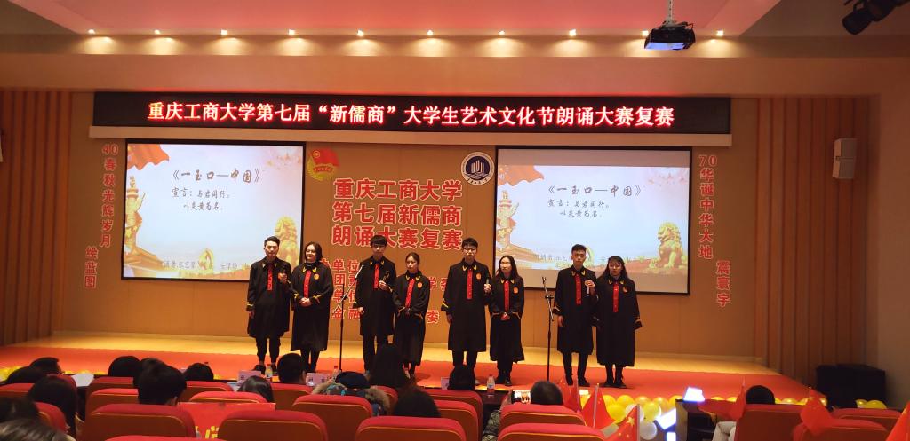 拳拳赤子心,歌颂爱国情。为庆祝祖国七十华诞,歌颂改革开放四十周年伟大成就,2018年12月16日晚18:00,英国正版365官方网站第七届“新儒商”老员工艺术文化节朗诵大赛复赛于南岸校区田家炳书院209报告厅圆满举行。本次大赛由共青团英国正版365官方网站委员会主办,财政英国上市公司365分团委员工会承办。复赛现场气氛热烈,来自各公司的选手与观众期待着大赛的完美演绎。
