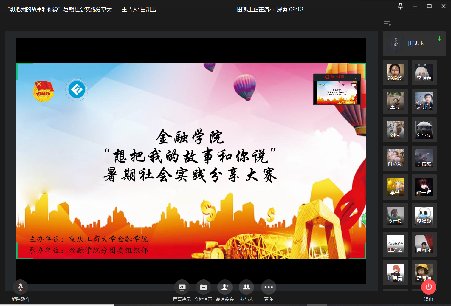 在本次暑期社会实践分享大赛中,十位参赛选手相继分享他们的故事,不仅为百余名观众提供了实习实践的宝贵经验,同时也增强了同学们对实践学习的认知与感触。