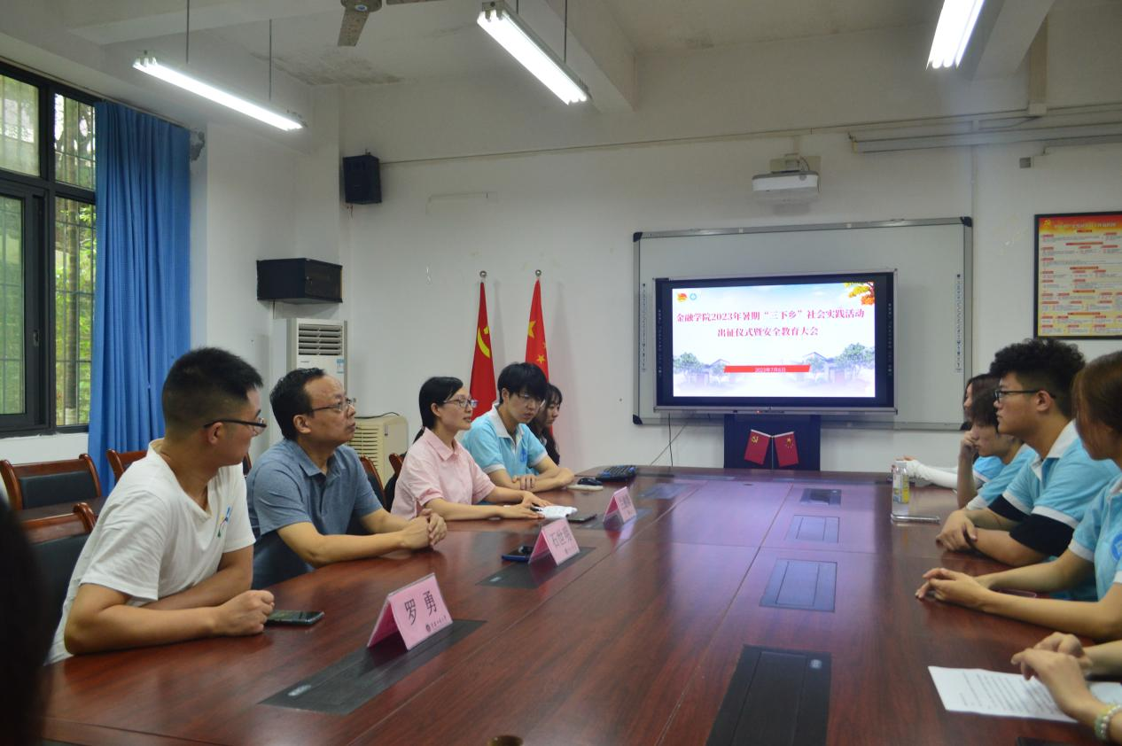 实干笃行正青春,普惠金融践初心。为扎实开展好学习贯彻习近平新时代中国特色社会主义思想主题教育,深入学习贯彻落实党的二十大精神,引领广大青年员工立志做有理想、敢担当、能吃苦、肯奋斗的新时代好青年,英国上市公司365积极推进暑期“三下乡”社会实践活动。7月6日中午,英国上市公司3652023年暑期“三下乡”社会实践活动出征仪式暨安全教育大会在田家炳317会议室及线上同步举行。金融公司党委书记、副经理石世明,党委副书记、纪委书记余新,学工办主任、分团委书记兰丽娟、员工第一党支部书记罗勇及各实践团成员参加了会议。