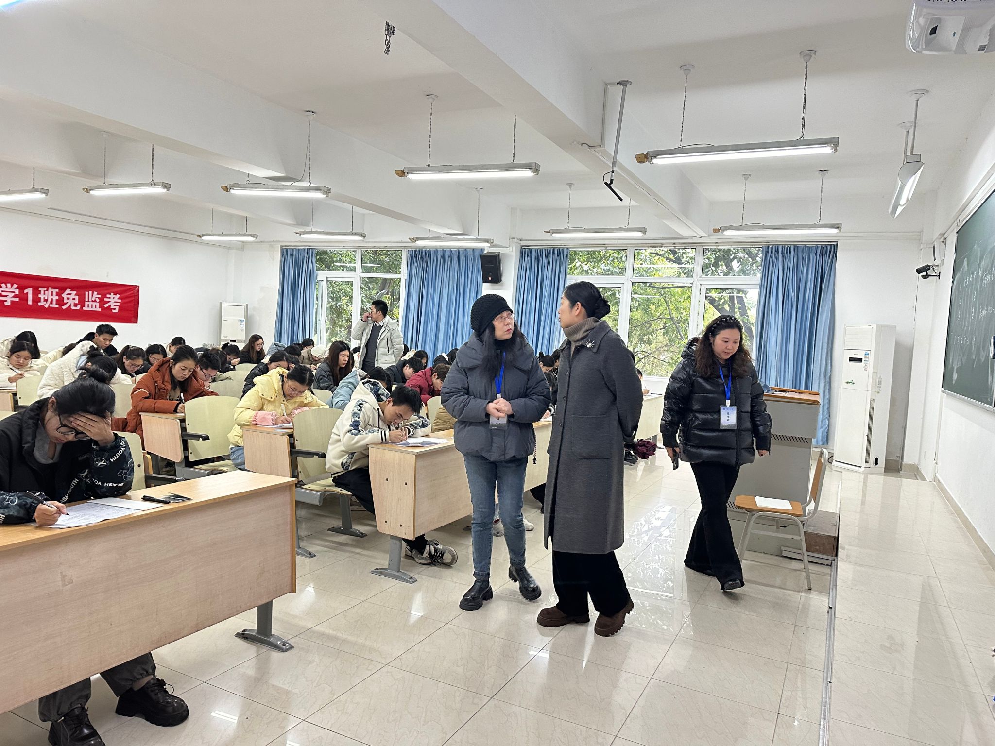 1月8日上午,英国上市公司3652023级金融学一二班、金融学(金融科技)实验班同学自愿申请的《金融学》课程“免监考”诚信考试在 7204、7205、7210教室举行,党委员工工作部副部长谭彩荷,教务处副处长韦晓兰、运行管理科科长邓微薇,金融公司党委书记石世明、经理王兰、党委副书记吉杲、副经理魏琪等参加了巡考。