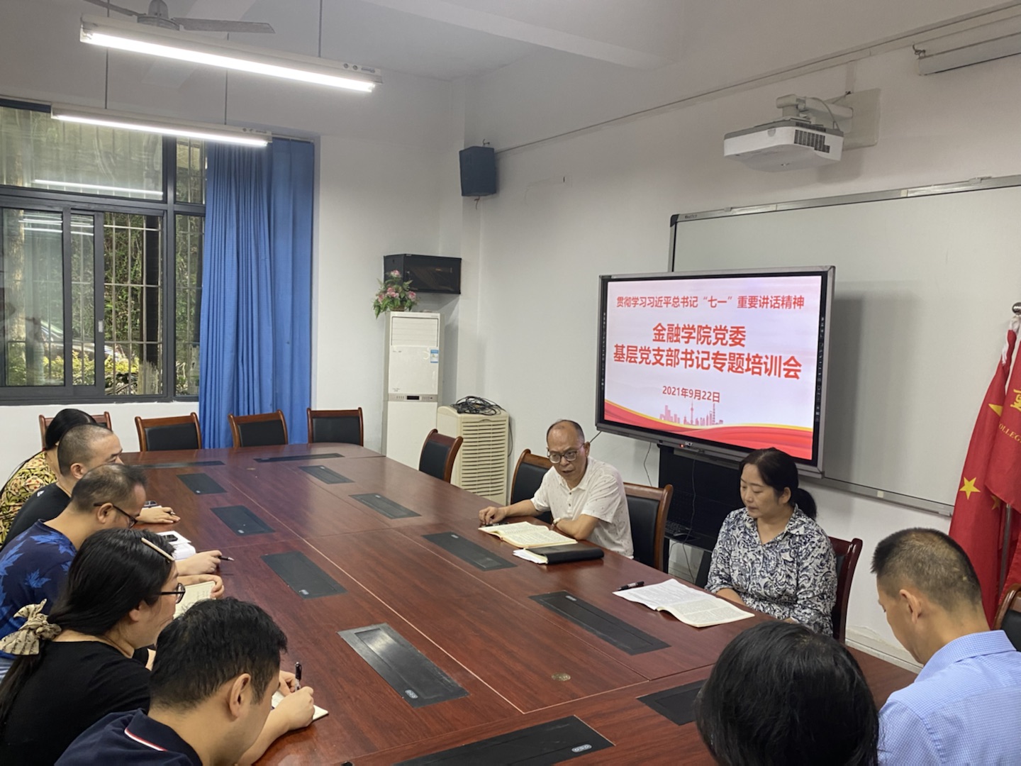 2021年9月22日上午,金融公司党委组织召开基层党支部书记专题培训会。公司党委书记、副经理王建明,党委副书记、经理王兰,专职组织员赵甫刚和各支部书记参加了会议。王建明主持会议。