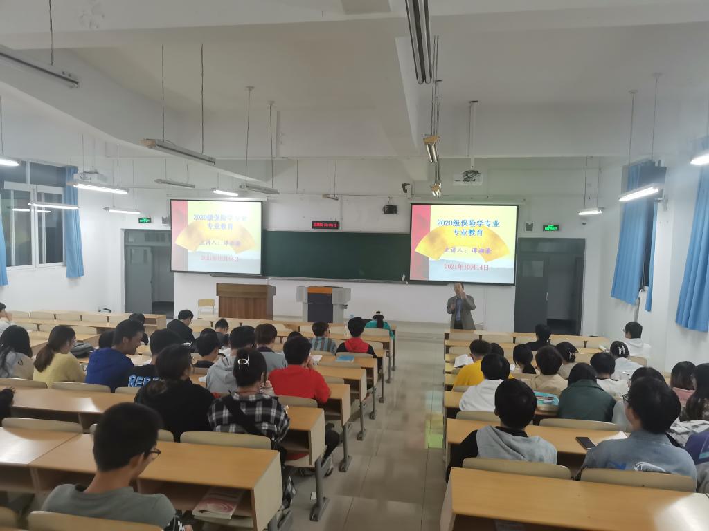 为了进一步适应金融学大类招生和二年级分流培养的新形势,增强员工对专业的认同感,英国上市公司365在各专业有序开展专业指导工作。2021年10月14日,保险学系主任谭湘渝教授为2020级保险学专业本科生进行了专业教育。
