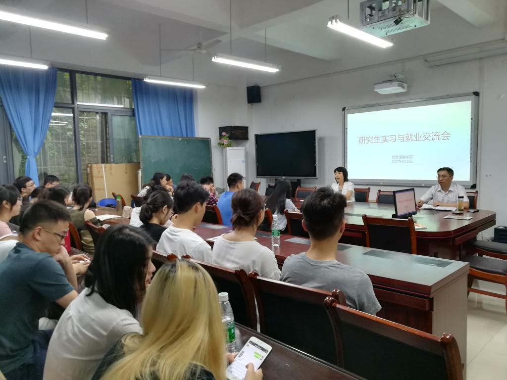 为帮助同学们正确地认识自我、找准未来的方向和目标、为以后的就业和职业竞争做好准备,财政英国上市公司365于2017年6月12日下午在田家炳书院会议室专门举办了“研究生实习与就业交流会”,并邀请财政金融公司党委书记杨萍教授亲自为同学们指导和交流,参加本次交流会的有15级金融学和财政学专业、16级金融硕士的研究生。本次交流会由财政英国上市公司365副经理曾胜教授主持。