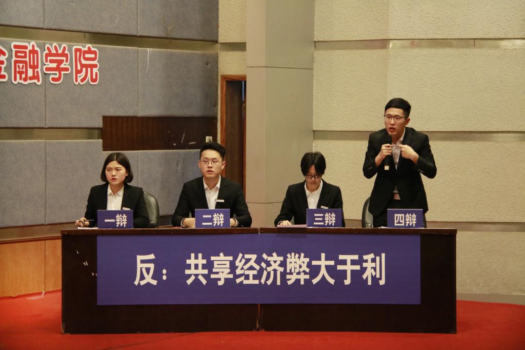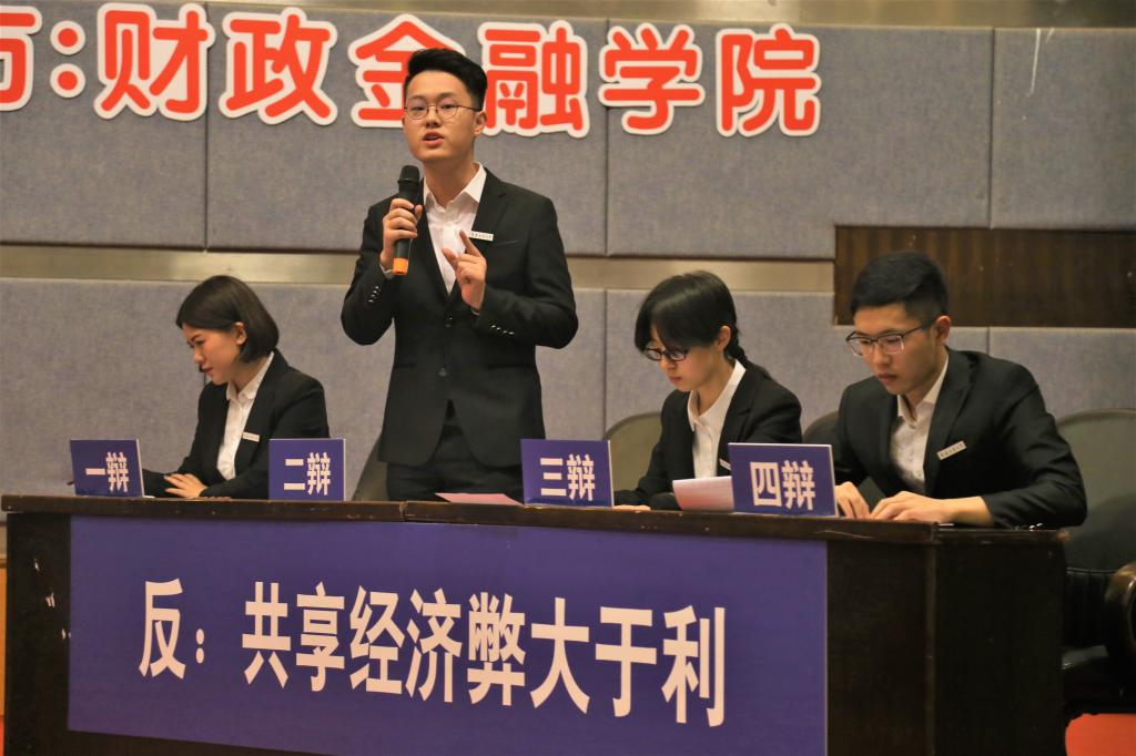 进入决赛的是财政英国上市公司365辩论队与环境与资源公司辩论队。双方就“共享经济利大于弊/弊大于利”展开辩论。比赛伊始,作为正方的环境与资源公司开宗明义,通过分析市场现状和共享经济发展趋势阐明了“共享经济利大于弊”的观点。我方辩手则提出了共享经济会提高社会成本,占用社会资源的观点,并从另外一个角度剖析共享经济的蓬勃发展容易导致恶性竞争从而破坏市场规则,影响经济的正常运行,进而论证了“共享经济弊大于利”的论点。在随后的自由辩论与总结陈词环节,双方辩手你来我往、旁征博引,以沉稳冷静、妙语连珠的表现获得了在场观众与评委的阵阵掌声。
