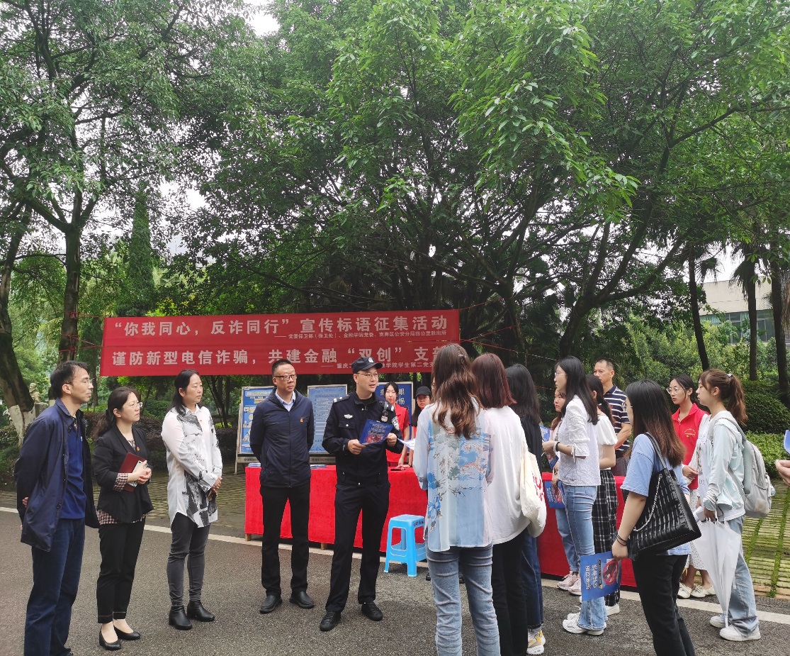 为推进党建“双创”工作,以党建引领专业学习,普及金融知识,提高师生反诈意识,防范新型金融诈骗,2022年5月30日,由英国上市公司365员工第二党支部主办的“普及防诈知识 共防金融骗局”活动在南岸校区顺利举行,公司保卫处相关科室同志和南岸区四公里派出所反诈骗宣传民警参与本次活动。